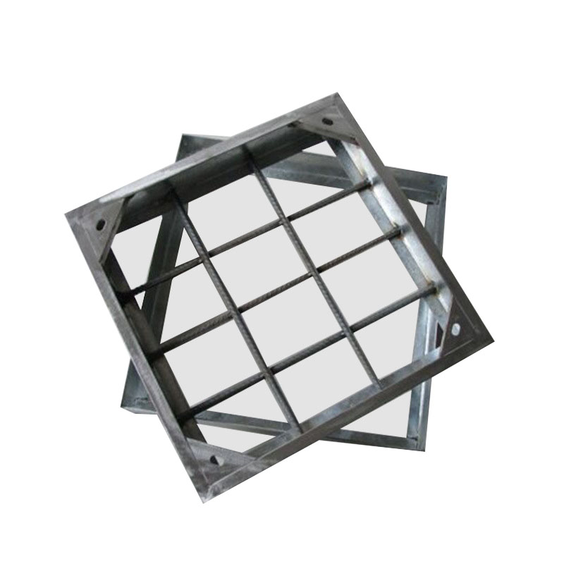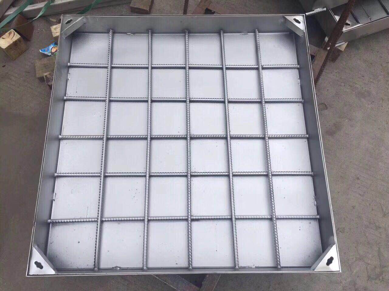 隱形井蓋精選高強度不銹鋼板材/鋼板為基材,底板凹槽增大承載能力,邊部焊接三角片方便后期開啟清潔。