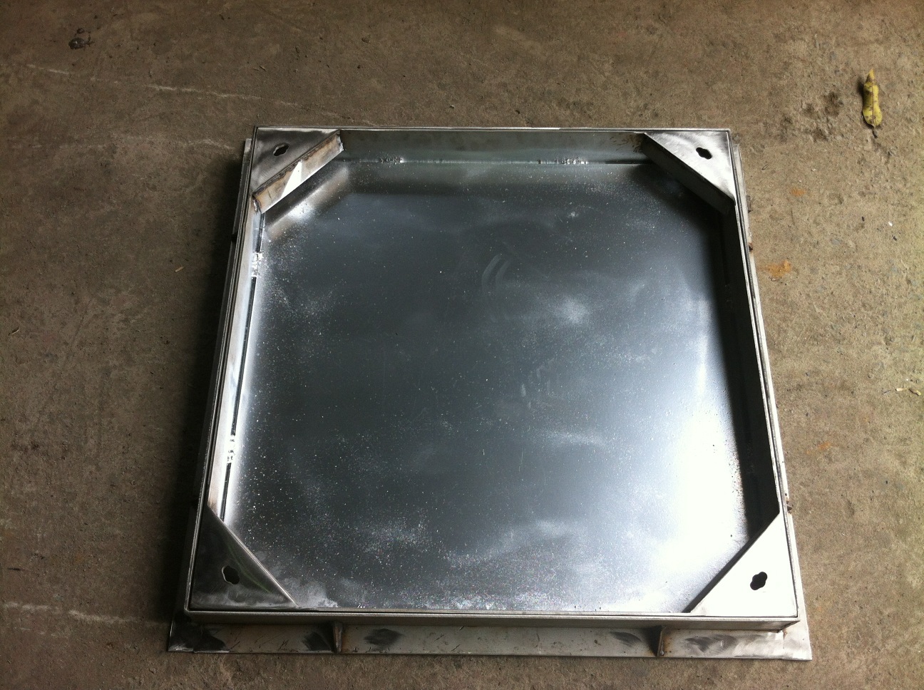 不銹鋼雨水井蓋采用高強(qiáng)度不銹鋼板材為基材,底部角鋼增強(qiáng),剪裁。折板再加上全套氬氟焊焊接工藝而成的不銹鋼隱形井蓋產(chǎn)品。