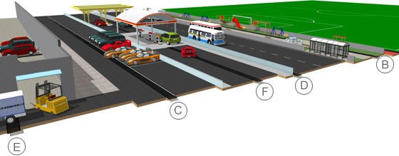 | 適用于輪子負(fù)荷高的地區(qū),例如港口和碼頭兩側(cè) | 適用于輪子負(fù)荷特別高的地區(qū),例如機(jī)場(chǎng)跑道 |